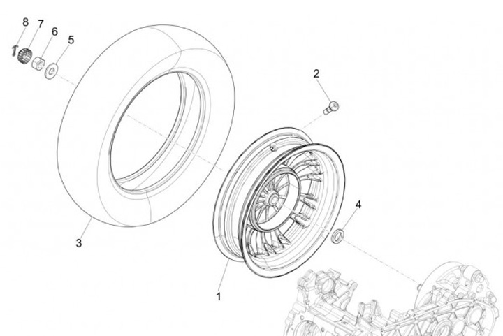 Wheel rim, rear -PIAGGIO 3.00-12 inch, Ø brake drum = 140mm - 14 spokes- Vespa Sprint 50 (ZAPC53101), Sprint 125, Sprint 150 - glossy black, polished rim