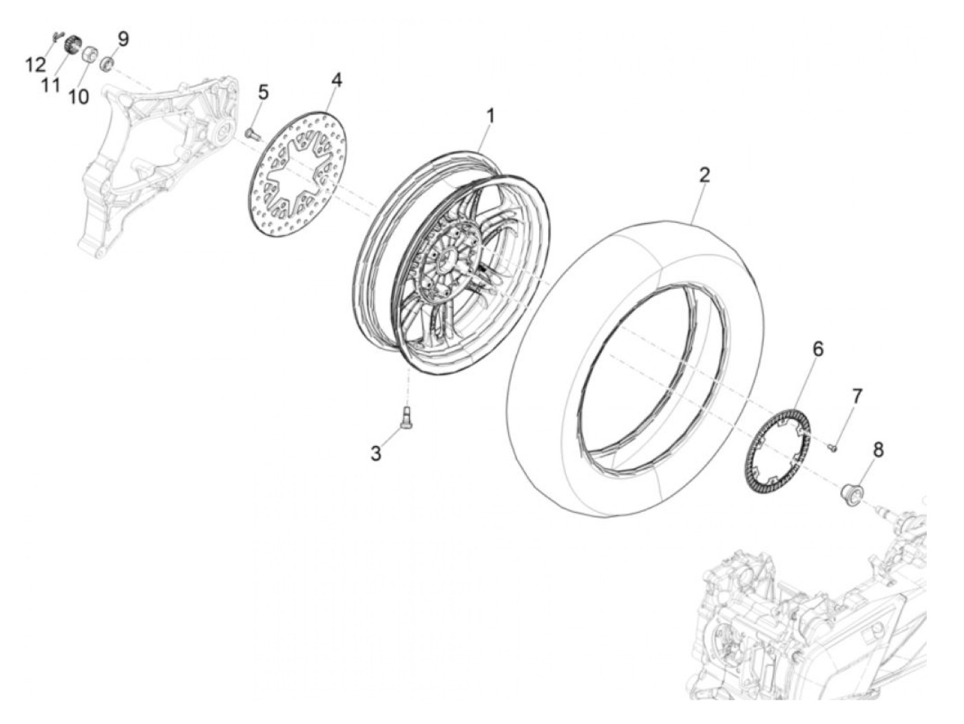 Distance piece rear axle, small 17x25x8.4mm -PIAGGIO- Vespa GT 250 (ZAPM45102), Vespa GT L 125 (ZAPM31100, ZAPM31101), Vespa GT L 200 (ZAPM31200), Vespa GTS 125 (ZAPM31300), Vespa GTS 250 (ZAPM45100, ZAPM45101), Vespa GTS 300 (ZAPM45200, ZAPM45202), Vespa
