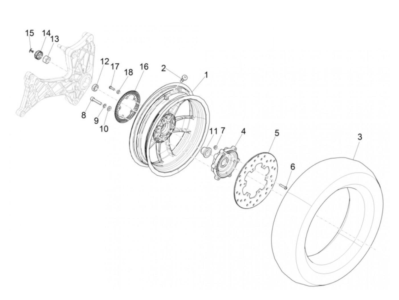Distance piece rear axle, small -PIAGGIO- Vespa GTS 125 (ZAPMA3100, ZAPMA3200, ZAPMA3700), Vespa GTS 150 (ZAPMA3200, ZAPMA3100), Vespa GTS 300 (ZAPMA3300), Vespa GTS HPE 300 (ZAPMA3600, ZAPMD310), Vespa GTS Super 125 (ZAPMA3100, ZAPMA3200, ZAPMA3700), Ves