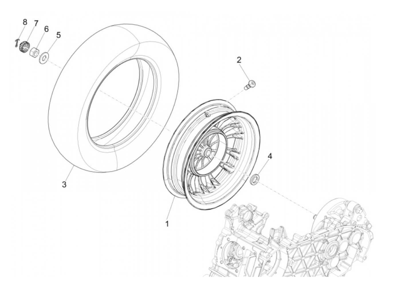 Wheel rim, rear, black -PIAGGIO 3.00-12 inch, Ø brake drum = 140mm - 14 spokes- Vespa Sprint 125 (ZAPM81300, ZAPM81301, ZAPMA1300, ZAPMA1301, ZAPMD1101), Vespa Sprint 150 (ZAPM81401, ZAPMA1400, ZAPMA1401, ZAPMD1201), Vespa Sprint 50 (ZAPC53101, ZAPC53301,