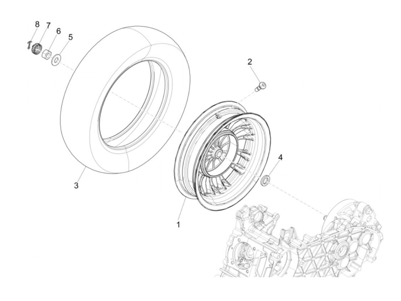 Rear hub nut -PIAGGIO- Vespa Primavera 125 (ZAPMA1100, ZAPMA1101, ZAPMD1100), Vespa Primavera 150 (ZAPMA1201, ZAPMA1200, ZAPMD120), Vespa Primavera 50 (ZAPCA0102, ZAPCA0100, ZAPCD020, ZAPCD010), Vespa Sprint 125 (ZAPMA1300, ZAPMA1301, ZAPMD1101), Vespa Sp