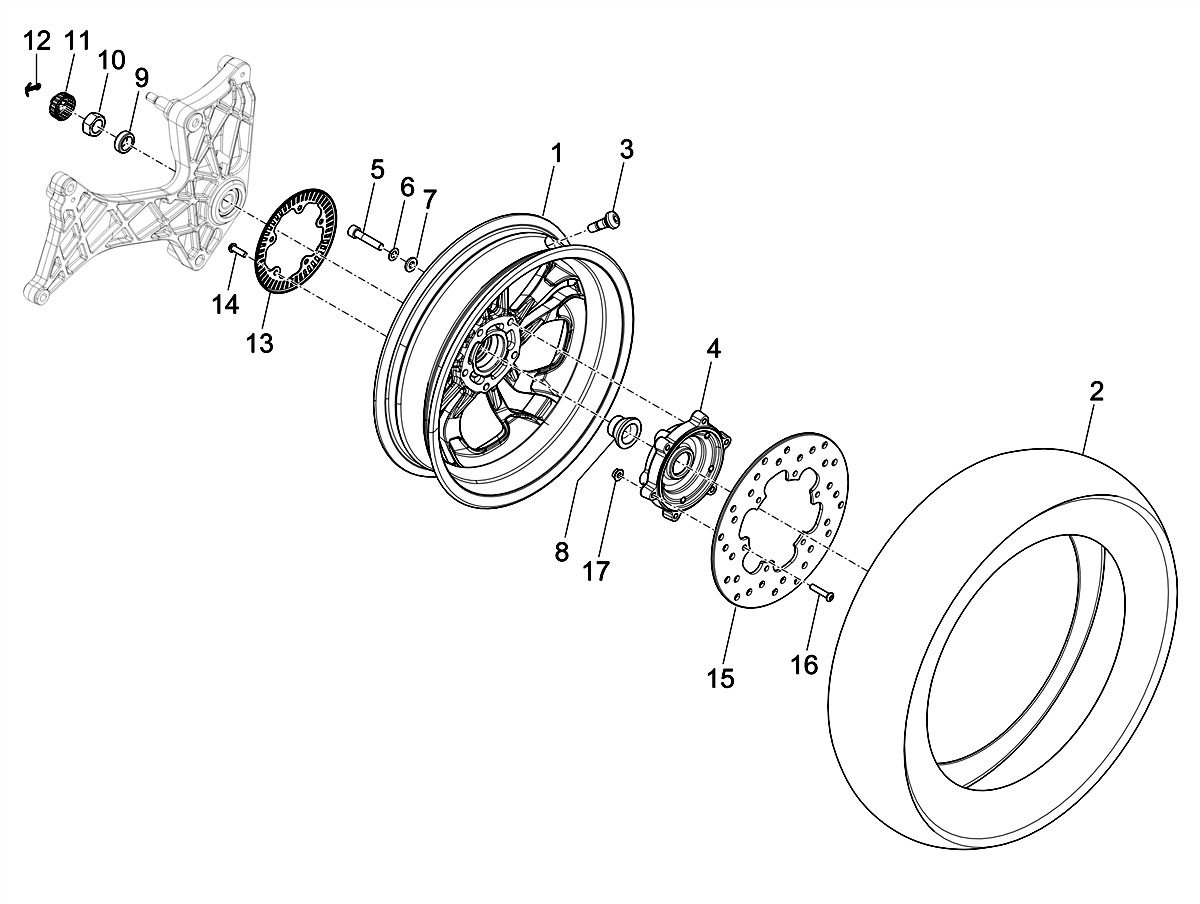 Tone wheel ABS sensor rear -PIAGGIO- Vespa GTS 125 (ZAPMA3200, ZAPMA3700), Vespa GTS HPE 300 (ZAPMA3600, ZAPMD310), Vespa GTS Super 125 (ZAPMA3100, ZAPMA3200, ZAPMA3700), Vespa GTS Super 300 (ZAPMA3300), Vespa GTS Super HPE 300 (ZAPMA360, ZAPMD3101, ZAPMD