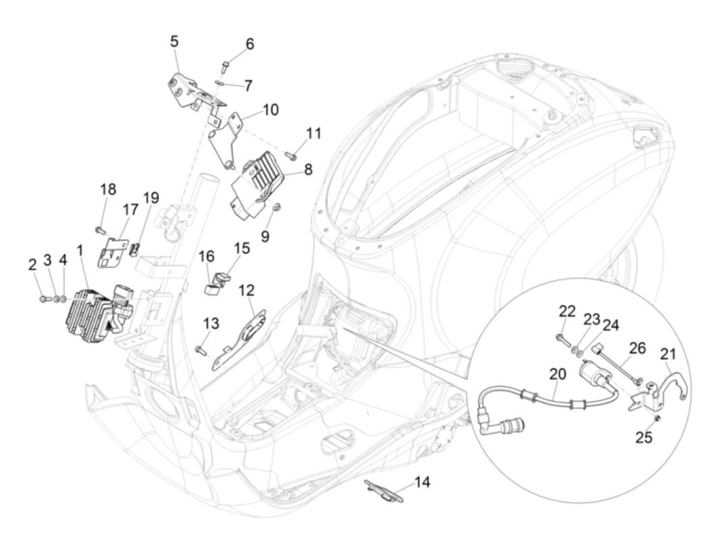 Bracket for relay -PIAGGIO- Vespa GTV 300 (ZAPMA3302), Vespa Primavera 125 (ZAPM81100, ZAPM81101, ZAPMA1100, RP8M82500, RP8M82821, RP8M82100, RP8M82310, ZAPMA1101, ZAPMD1100), Vespa Primavera 150 (ZAPM81200, ZAPMA1200, ZAPM81201, ZAPMA1201, ZAPMD120), Ves