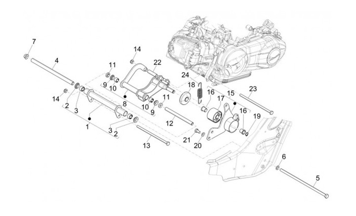 Bracket for engine swing arm -PIAGGIO- Vespa GT 250 (ZAPM45102), Vespa GTS 250 (ZAPM45100, ZAPM45101), Vespa GTS 300 (ZAPM45200, ZAPM45202, ZAPMA3300), Vespa GTS HPE 300 (ZAPMA3600, ZAPMD310), Vespa GTS Super 300 (ZAPM45200, ZAPM45202, ZAPMA3300), Vespa G