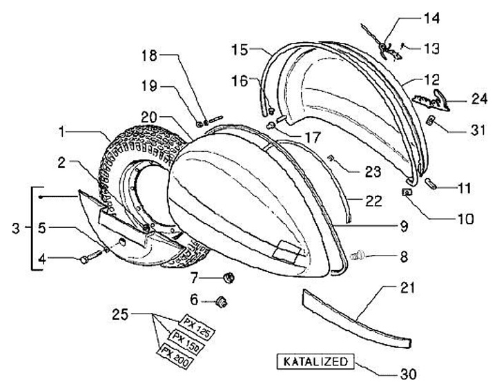 Spare wheel cover -PIAGGIO- Vespa PX80, PX125, PX150, PX200