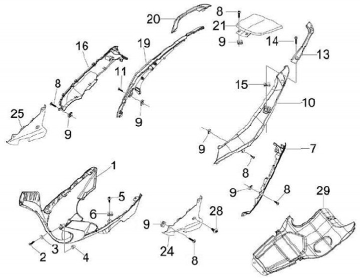 Cover -PIAGGIO- rear fairing bottom centre - Gilera Nexus, Aprilia SR Max - black