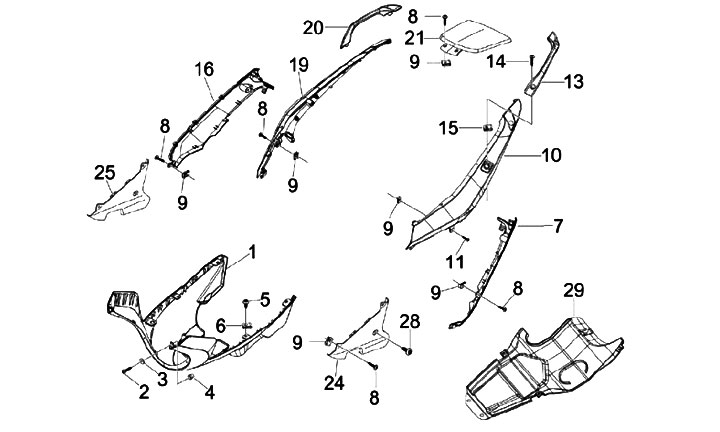 Cover -PIAGGIO- rear fairing bottom centre - Gilera Nexus, Aprilia SR Max - black