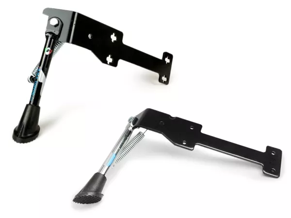NOTE: Vehicles with 9 inch tires have a lower bottom plate height than the 10 inch models. For this reason, the side stand may have to be shortened slightly for mounting on 9-inch models.