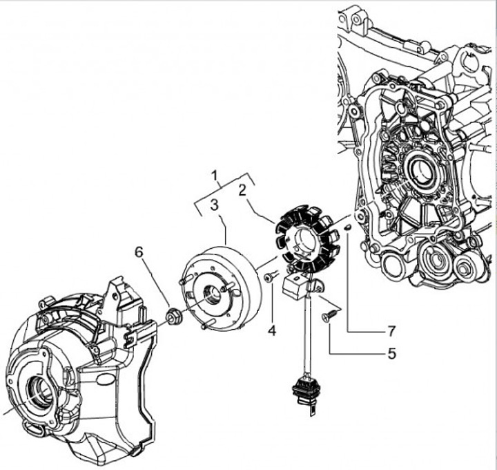Flywheel -PIAGGIO- Vespa GTS 125 (ZAPM31300), Vespa GTV 125 (ZAPM31301), Derbi GP1 125 (VTHPT1B1A, VTHPS1B1A), Gilera Nexus 125 (ZAPM35500), Gilera Runner 2 (RST) 125 (ZAPM46300, ZAPM46100, ZAPM46301), Piaggio Beverly 125 (ZAPM28900, ZAPM28400, ZAPM28901)