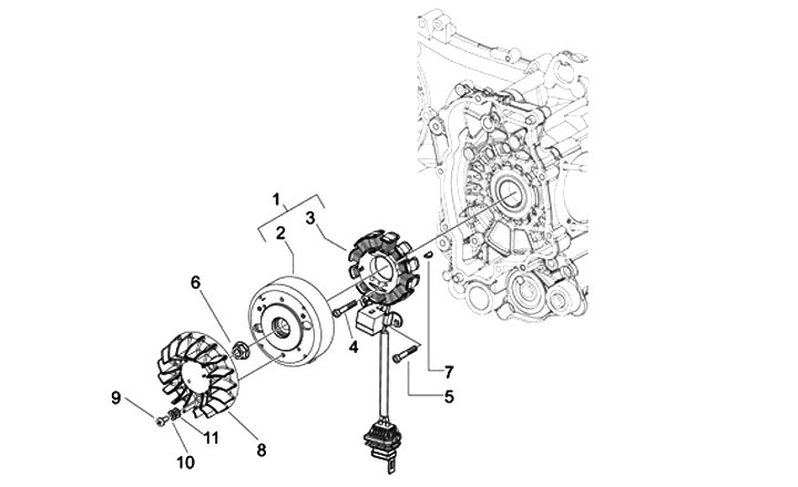 Alternator complete -PIAGGIO- Vespa ET4 125 (ZAPM19), GTL 125 (ZAPM311), LX 125 (ZAPM441), Aprilia Mojito 125 (ZD4RY), Piaggio Beverly RST 125 (ZAPM284), Gilera Runner VX 125 (ZAPM461)