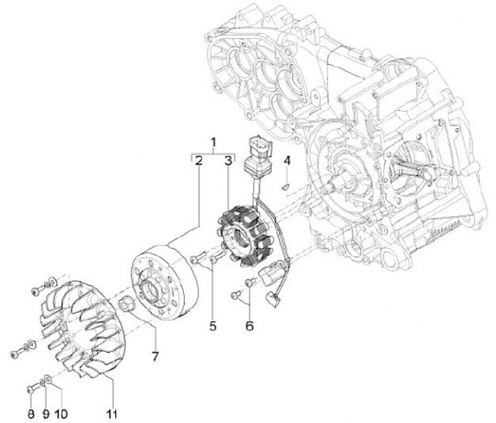 Alternator complete -PIAGGIO- Vespa ET4 125 (ZAPM19), GTL 125 (ZAPM311), LX 125 (ZAPM441), Aprilia Mojito 125 (ZD4RY), Piaggio Beverly RST 125 (ZAPM284), Gilera Runner VX 125 (ZAPM461)