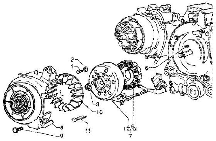 Alternator complete -PIAGGIO- Vespa ET4 125 (ZAPM19), GTL 125 (ZAPM311), LX 125 (ZAPM441), Aprilia Mojito 125 (ZD4RY), Piaggio Beverly RST 125 (ZAPM284), Gilera Runner VX 125 (ZAPM461)