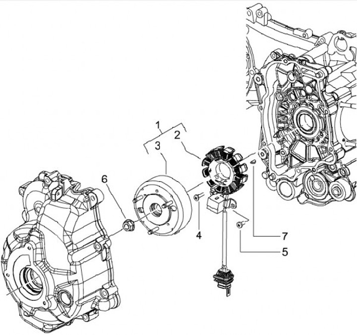 Alternator complete -PIAGGIO- Vespa ET4 125 (ZAPM19), GTL 125 (ZAPM311), LX 125 (ZAPM441), Aprilia Mojito 125 (ZD4RY), Piaggio Beverly RST 125 (ZAPM284), Gilera Runner VX 125 (ZAPM461)