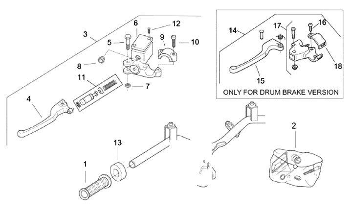 Brake lever (rear drum brake) -APRILIA- Amico (075, ZD4MK), Gulliver (ZD4LH02, ZD4LHA), Mojito (ZD4PKC0), Rally (ZD4MD0, ZD4MDB, ZD4TM), Sonic (ZD4PBB0, ZD4PBB1), SR (078, ZD4LC, ZD4LY, ZD4MZ, ZD4PX)
