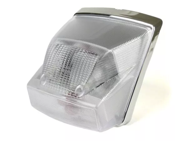 Noble tail light of the Vespa PX Millenium (my2001) models. Fits all PX from 1977 to today. Significantly enhances the rear view through the chrome rim.