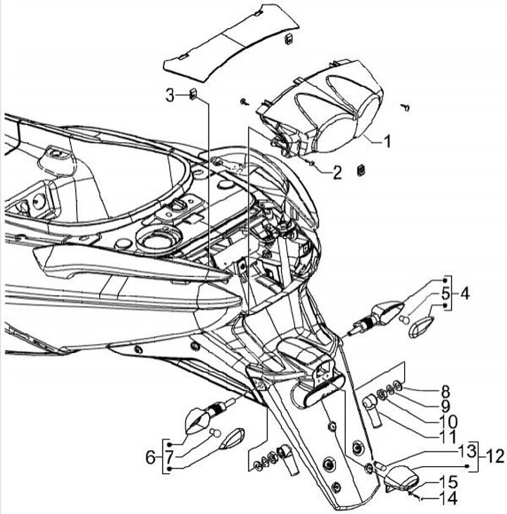 Indicator -PIAGGIO- Gilera Fuoco 500, GP 800, Piaggio MP3 250-500, Aprilia SRV 850 - white - front lhs/rear rhs