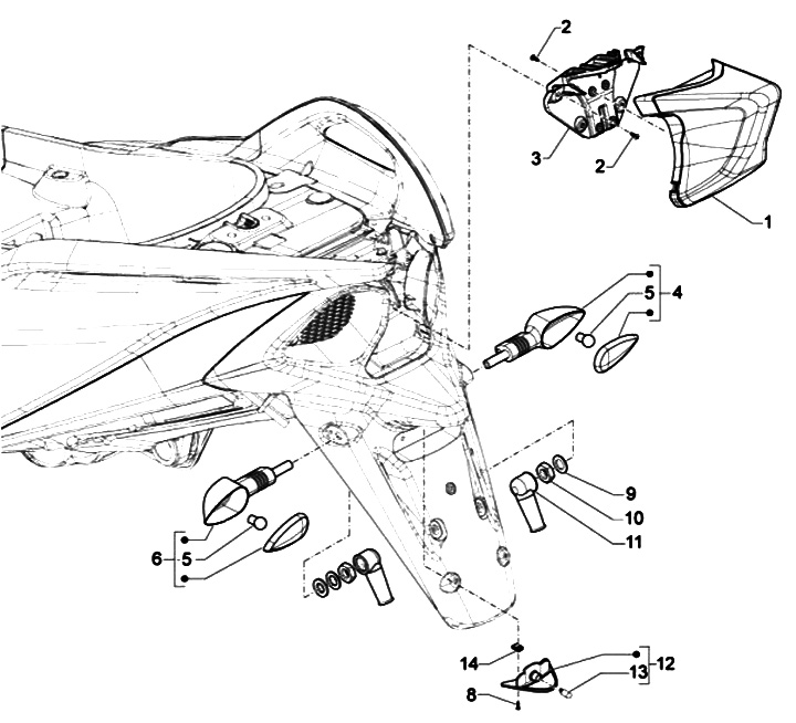 Indicator -PIAGGIO- Gilera Fuoco 500, GP 800, Piaggio MP3 250-500, Aprilia SRV 850 - white - front lhs/rear rhs