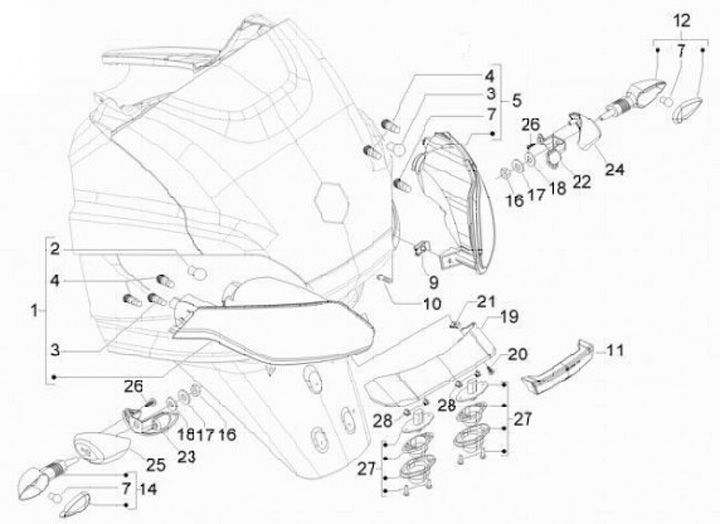 Indicator -PIAGGIO- Gilera Fuoco 500, GP 800, Piaggio MP3 250-500, Aprilia SRV 850 - white - front lhs/rear rhs