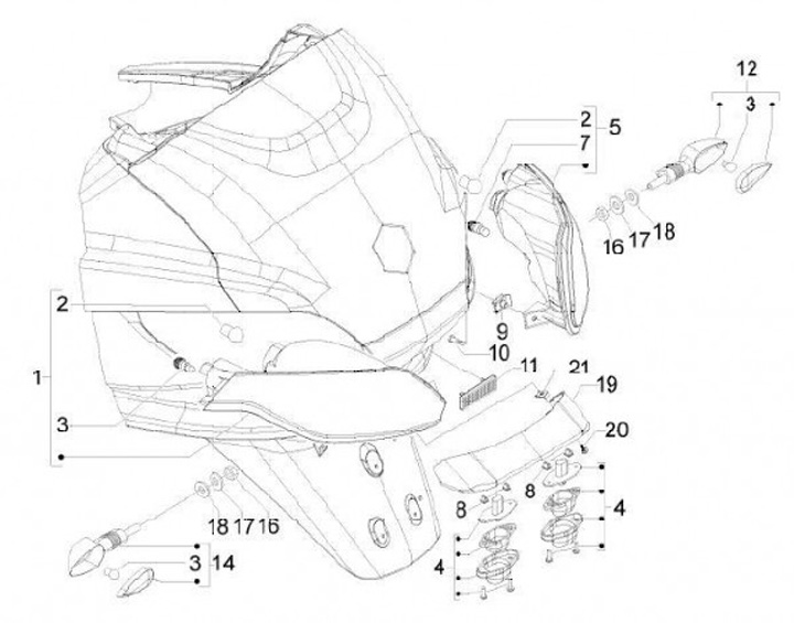 Indicator -PIAGGIO- Gilera Fuoco 500, GP 800, Piaggio MP3 250-500, Aprilia SRV 850 - white - front lhs/rear rhs
