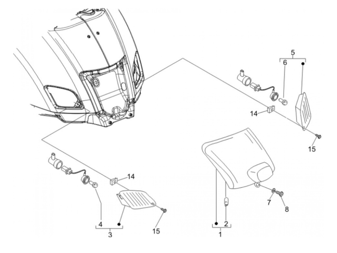 Indicator -PIAGGIO- Vespa LX, LXV, S- colourless - smooth lens - rear lhs