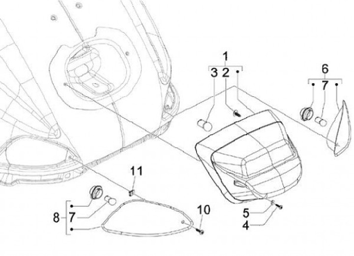 Indicator -PIAGGIO- Vespa LX, LXV, S- colourless - smooth lens - rear, rhs