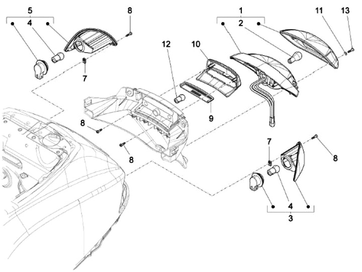 Indicator -PIAGGIO- Vespa LX, LXV, S- colourless - smooth lens - rear lhs