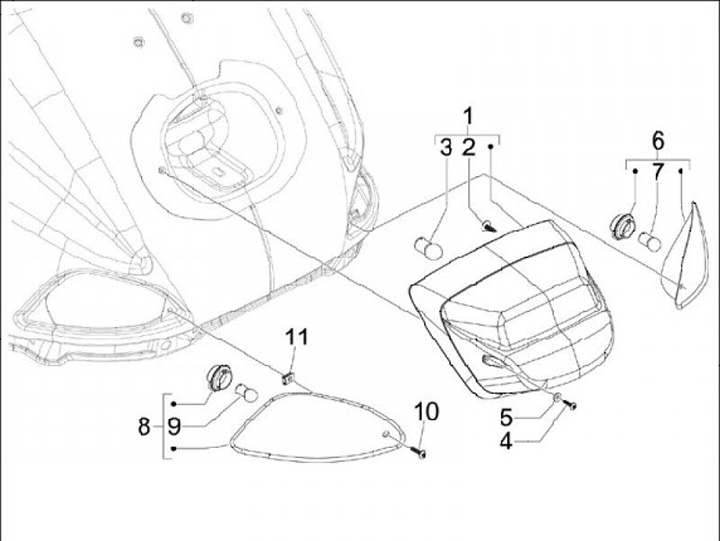 Indicator -PIAGGIO- Vespa LX, LXV, S- colourless - smooth lens - rear, rhs