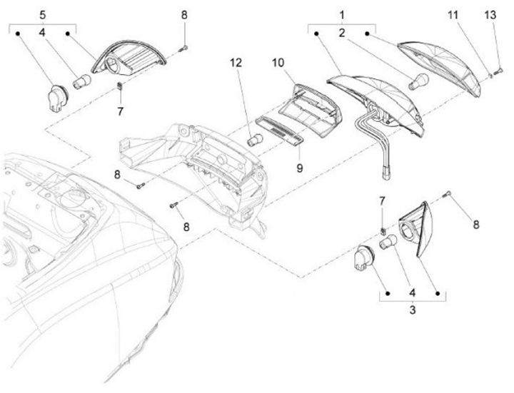 Indicator -PIAGGIO- Vespa LX, LXV, S- colourless - smooth lens - rear lhs