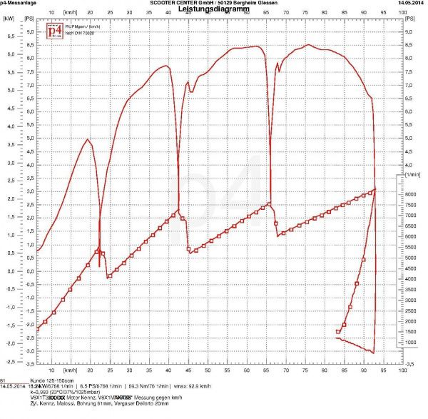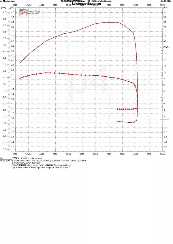 When measuring according to DIN on the Amerschläger P4 test bench, we have to enter the key data of your engine in the diagram so that the inspector can assign the diagram to the vehicle correctly. All scooters with gears and four gears are usually measured in third gear. This information is also noted in the diagram.