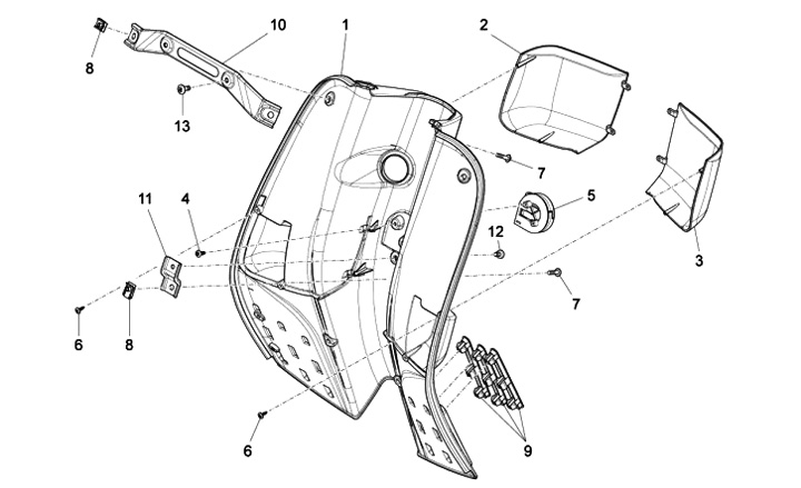 Upper bracket for inner legshield cover -PIAGGIO- Vespa S (ZAPC38, ZAPM44, ZAPM68)