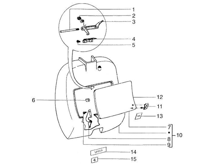 Badge tool box -VESPA- eVespa! - Vespa PK XL FL (V5N1T), PK50 Automatik (V5P2T), PK50 HP (V5N2T), PK50 XL2 (V5X3T), PK125 XL2 (VMX6T), PK50 XL2 Automatik (VA52T)