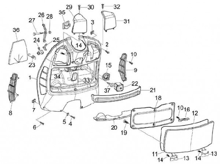 Glove box -PIAGGIO- Vespa GT L 125 (ZAPM31100, ZAPM31101), Vespa GT L 200 (ZAPM31200), Vespa GTS 125 (ZAPM31300, ZAPMA3100, ZAPMA3200), Vespa GTS 150 (ZAPMA3200, ZAPMA3100), Vespa GTS 250 (ZAPM45100, ZAPM45101), Vespa GTS 300 (ZAPM45200, ZAPM45202, ZAPMA3