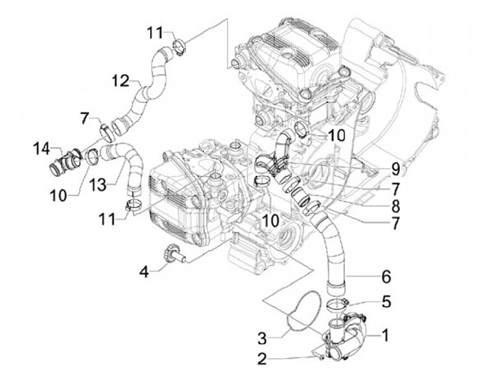 Hose clamp coolant hose/cylinder -PIAGGIO- Universal, 12V (used in Piaggio Leader 125 (since 2009), Leader Hybrid)