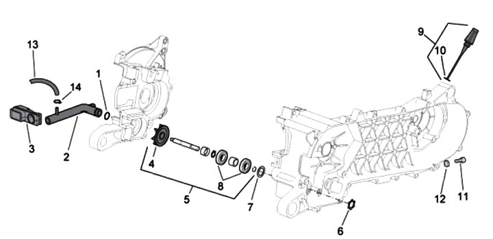 Radiator hose coupling at engine -PIAGGIO- Piaggio 50cc LC (HiPer 2)