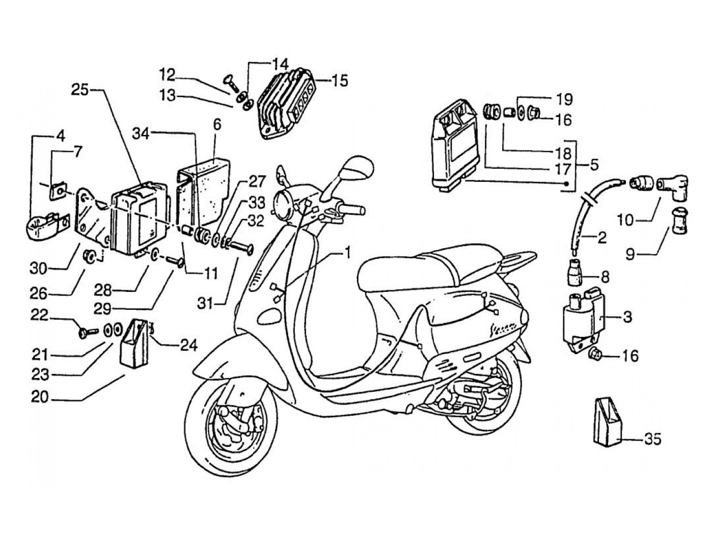 Silent rubber CDI/ignition coil -PIAGGIO- Vespa PK, Vespa S, Vespa LX, Gilera Runner 50, Piaggio NRG