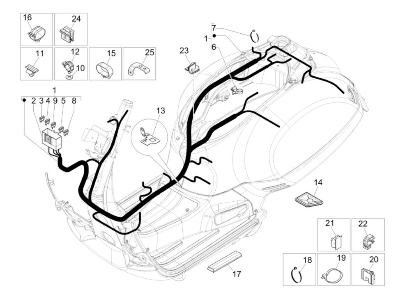 Edge protector ( cable harness protection ) for PIAGGIO- Vespa GTS 125 (ZAPMA3100, ZAPMA3200, ZAPMA3700), Vespa GTS 150 (ZAPMA3200, ZAPMA3100), Vespa GTS 250 (ZAPM45100), Vespa GTS 300 (ZAPM45200, ZAPM45202, ZAPMA3300), Vespa GTS Super 125 (ZAPM45300, ZAP