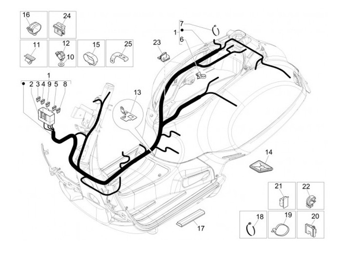 Edge protector ( cable harness protection ) for PIAGGIO- Vespa GTS 125 (ZAPMA3100, ZAPMA3200, ZAPMA3700), Vespa GTS 150 (ZAPMA3200, ZAPMA3100), Vespa GTS 250 (ZAPM45100), Vespa GTS 300 (ZAPM45200, ZAPM45202, ZAPMA3300), Vespa GTS Super 125 (ZAPM45300, ZAP