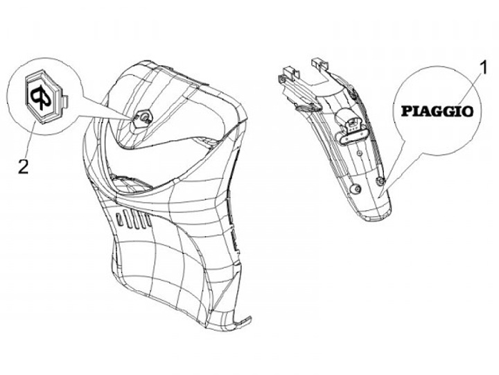 Letras -PIAGGIO- Hexágono Piaggio (42x48mm)- Piaggio Beverly, Beverly Cruiser, Beverly MIC, Beverly RST, Beverly Sport Touring, Beverly Tourer, Carnaby, Fly, Liberty, Liberty Sport, Liberty Teens, MP3, MP3 Yourban, X7, X8, X10, X Evo