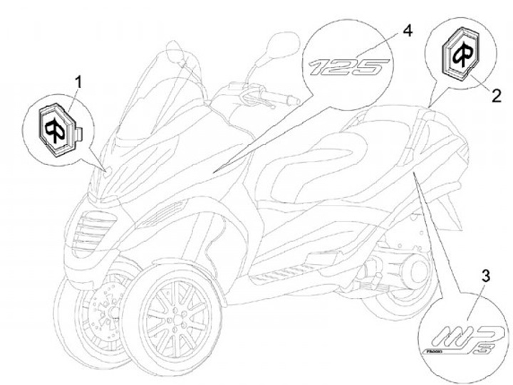 Letras -PIAGGIO- Hexágono Piaggio (42x48mm)- Piaggio Beverly, Beverly Cruiser, Beverly MIC, Beverly RST, Beverly Sport Touring, Beverly Tourer, Carnaby, Fly, Liberty, Liberty Sport, Liberty Teens, MP3, MP3 Yourban, X7, X8, X10, X Evo