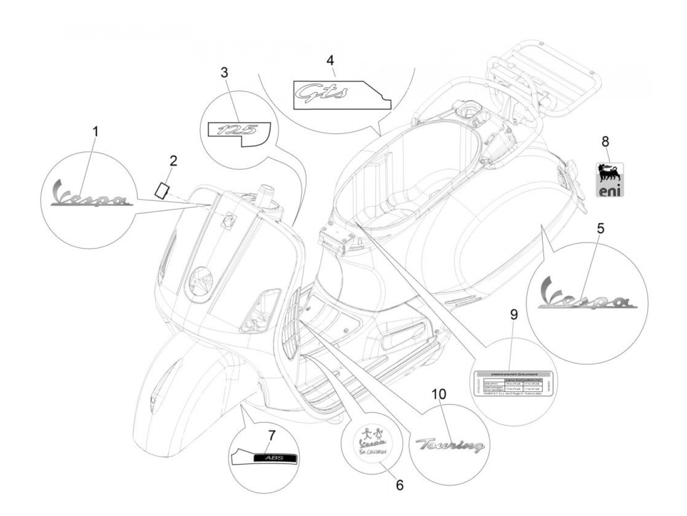 Rotulación -PIAGGIO- ABS - Vespa GTS 125 (ZAPMA3100, ZAPMA3200, ZAPMD3200), Vespa GTS 150 (ZAPMA3200, ZAPMA3100), Vespa GTS Super 125 (ZAPMA3100, ZAPMA3200, ZAPMD3200)