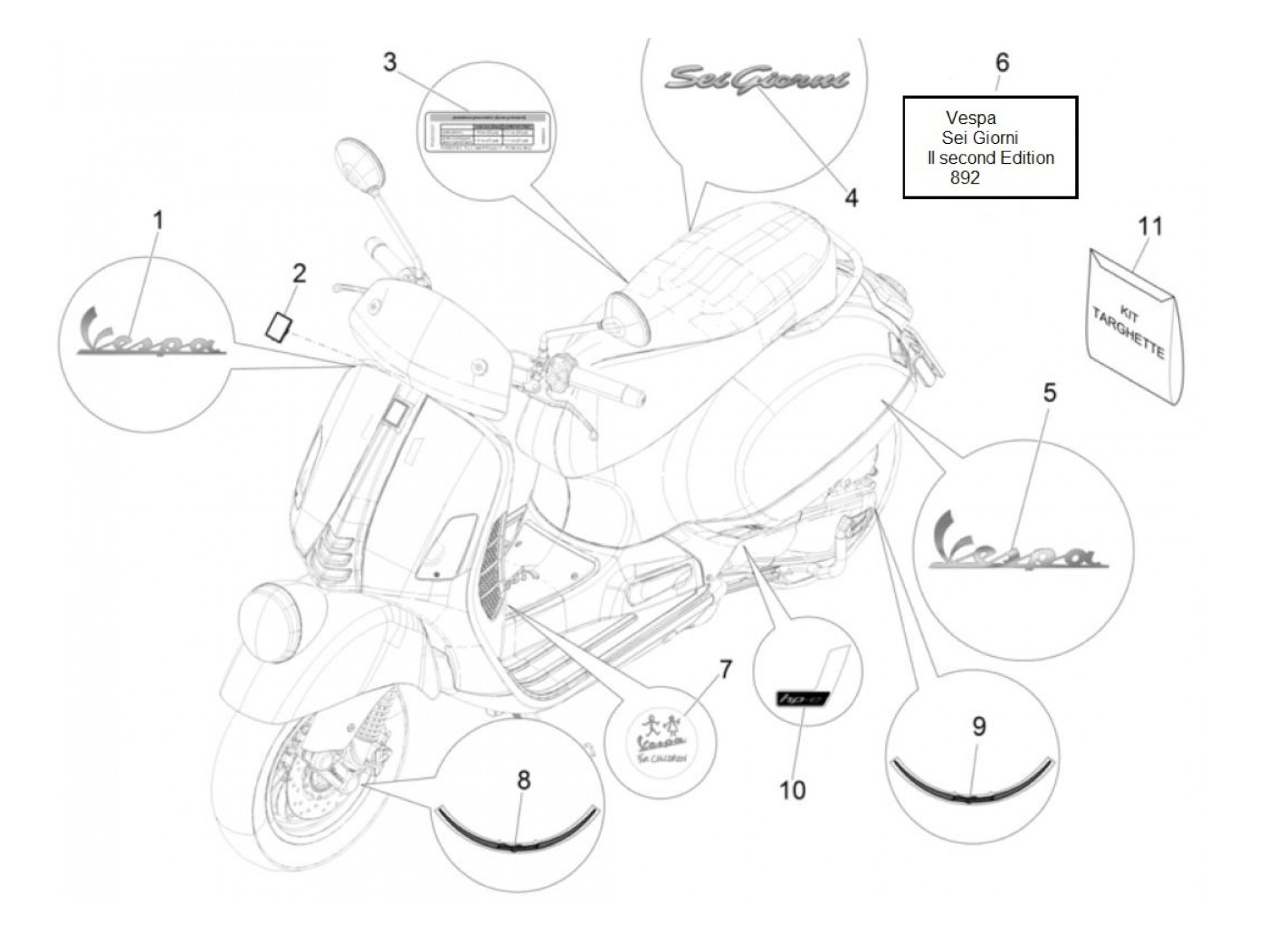 Rotulación -VESPA, Sei Giorni II Edition- Vespa GTV 300 (ZAPMA3302), Vespa GTV HPE 300 (ZAPMA3602, ZAPMA362, ZAPMD3102)