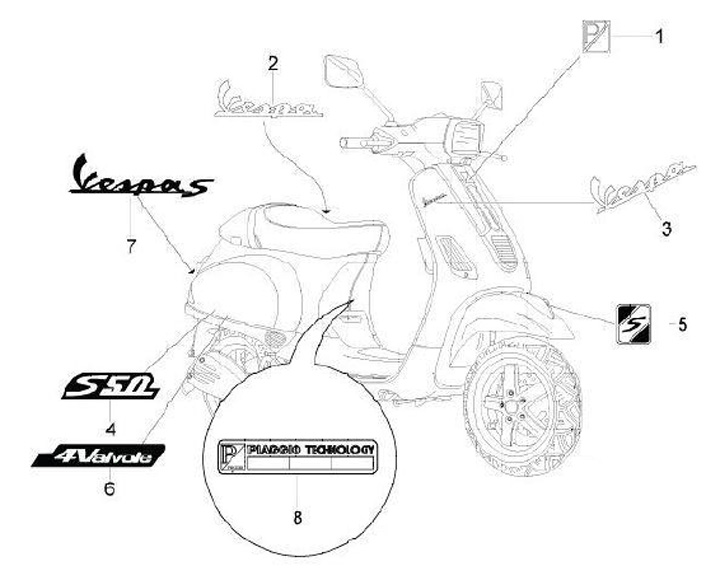 Rotulación bastidor trasero -PIAGGIO- Vespa S- Vespa S 50-125