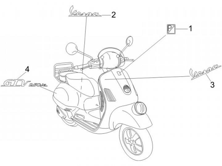 Placa de pata de letras -VESPA- Vespa (99x33mm) - Vespa PX, GTL, GTS125, GTS Super, GTV, LX, LXV, S - autoadhesiva