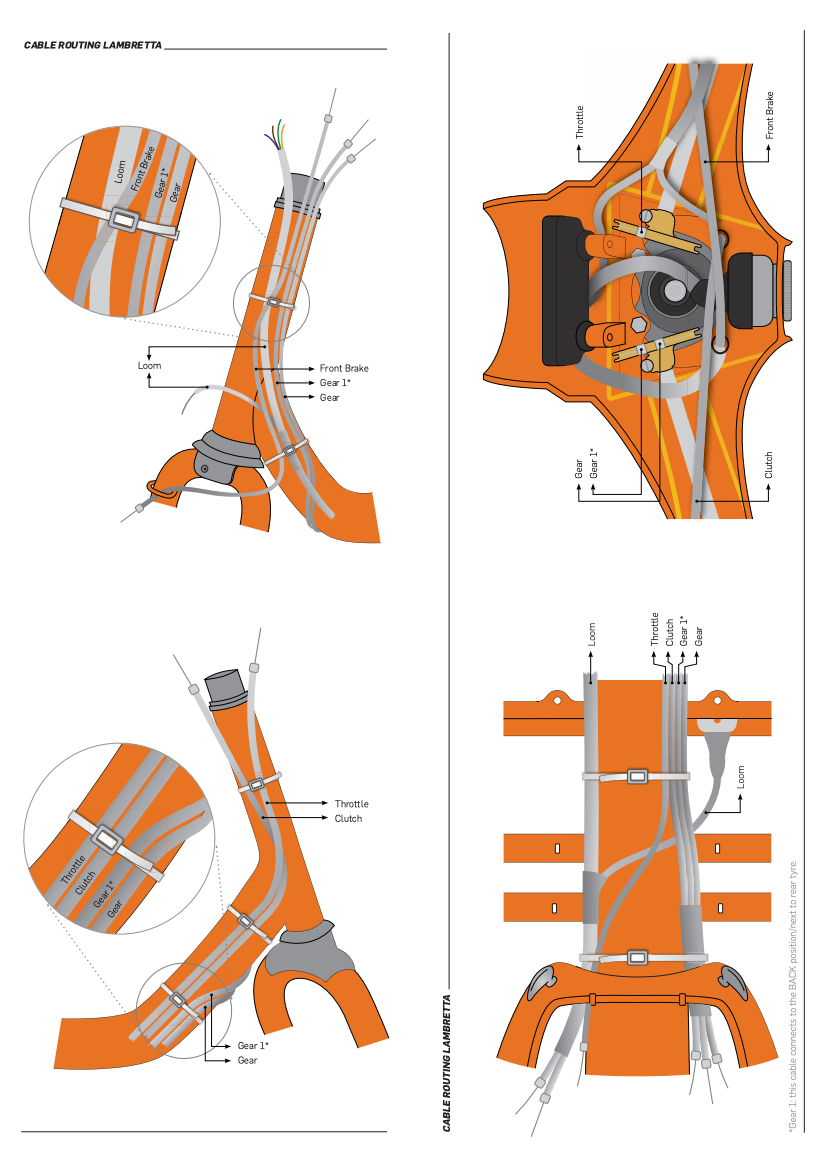 Esencialmente, los cables con revestimiento de Teflón/PTFE. Estos funcionan de manera muy suave y son libres de mantenimiento. Los kits de cables bgm están especialmente fabricados para la familia Li de Lambretta y tienen algunas características únicas. Las longitudes correctas de los cables interiores y exteriores están garantizadas. Aquí tienes más información sobre lo buenos que son: kits-de-cables-bgm-pro-para-vespa-y-lambretta/. Volviendo a la acción: Una vez que hayas instalado correctamente los cables exteriores, como se muestra en las instrucciones de montaje del bgm: