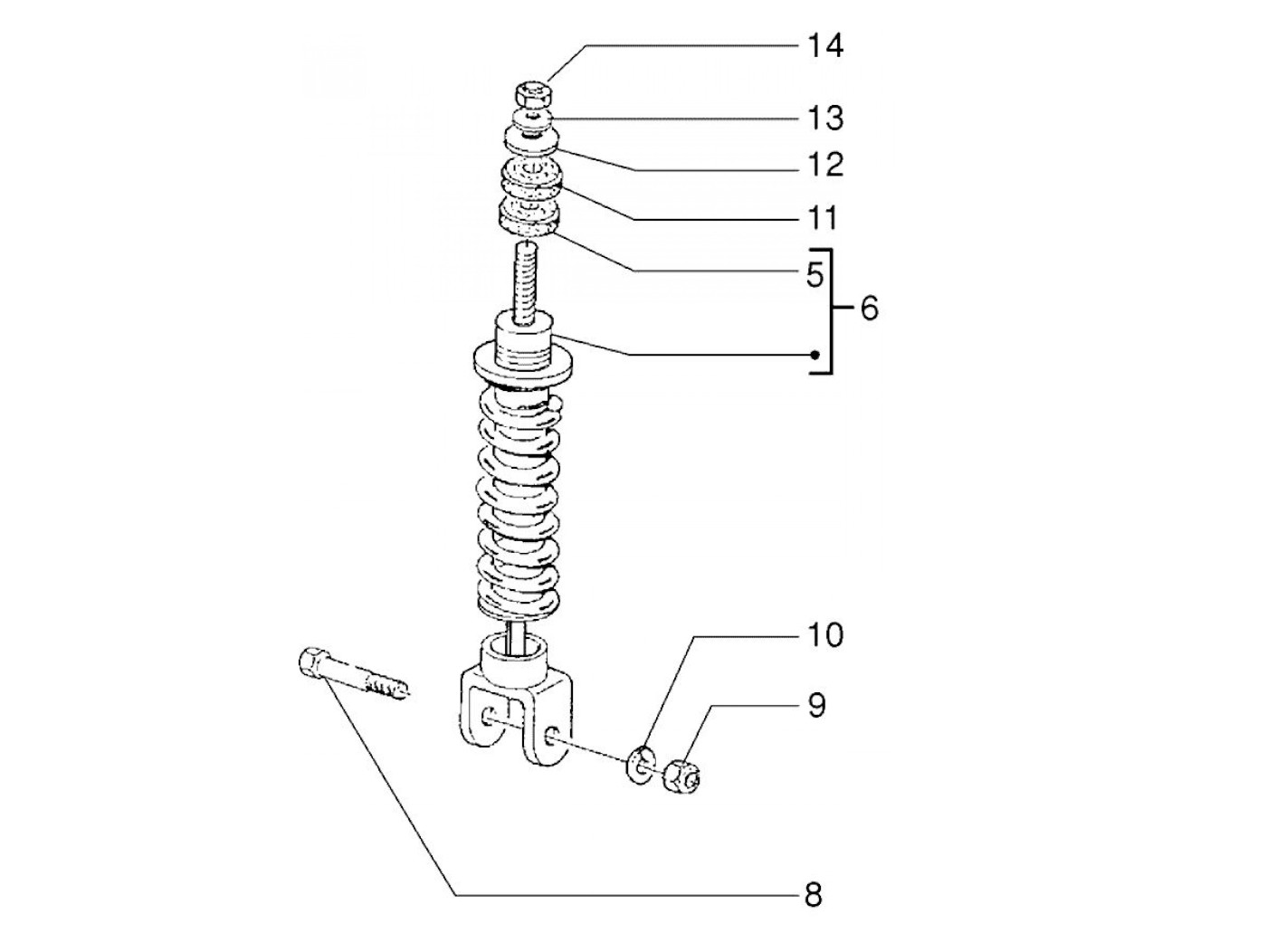 Amortiguador de goma silencioso parte superior trasera (goma fina superior) -PIAGGIO 12x31x18mm- Vespa PK S-XL, Cosa, GT, GTS 125-300, GTL, GTV, LX, LT, LXV, Primavera, Sprint, ET2, ET4