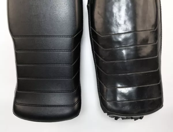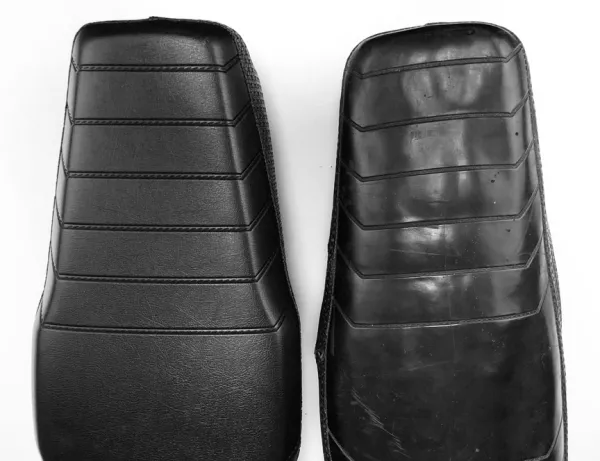 Estamos más que satisfechos con el resultado y podemos ofrecer asientos y fundas de asiento completos directamente de la estantería de SC. Los hicimos con la costura negra original de fábrica y una versión vintage con costura blanca. El hilo de algodón negro original se destiñe con el paso de las décadas. Algo que exploramos anteriormente en el blog de SC: