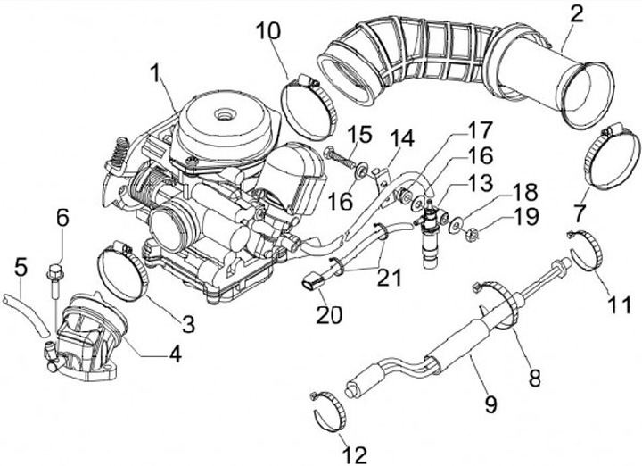 Manguera de admisión para caja de filtro de aire -PIAGGIO- Vespa LX 50 4T, S 50 4T, Sprint 50 4T, Primavera 50 4T, Piaggio Fly 50 4T, Aprilia Scarabeo 50 4T, SR 50 Motard 4T