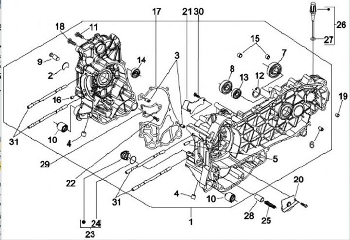 Junta del cárter del motor -PIAGGIO- Vespa GT 250 (ZAPM45102), Vespa GT L 125 (ZAPM31101), Vespa GT L 200 (ZAPM31200), Vespa GTS 125 (ZAPM31300), Vespa GTS 250 (ZAPM45100, ZAPM45101), Vespa GTS 300 (ZAPM45200, ZAPM45202, ZAPMA3300), Vespa GTS HPE 300 (ZAP