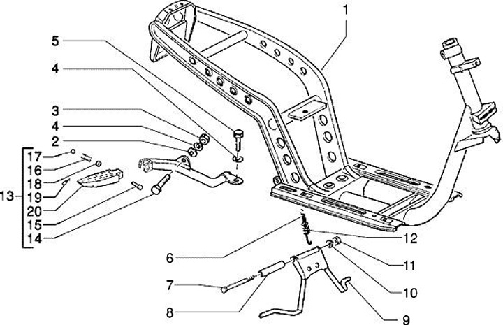 Caballete central -PIAGGIO- Piaggio TPH 125 (ZAPM02000), Gilera Runner 125 (ZAPM07000), Gilera Runner 180 (ZAPM08000)