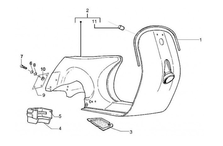 Parachoques - protección cuadro - guardabarros -PIAGGIO- Vespa PX 2011 (2001-) - negro